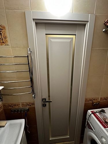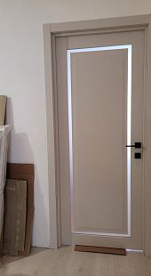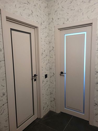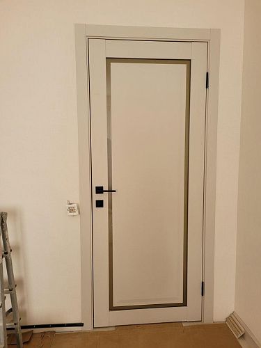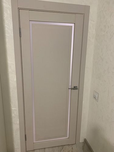 Дверь ПО Queen N23 Велюр светлый стекло белое из Экошпона COVERFLEX (Двери Нева) в с установкой и доставкой