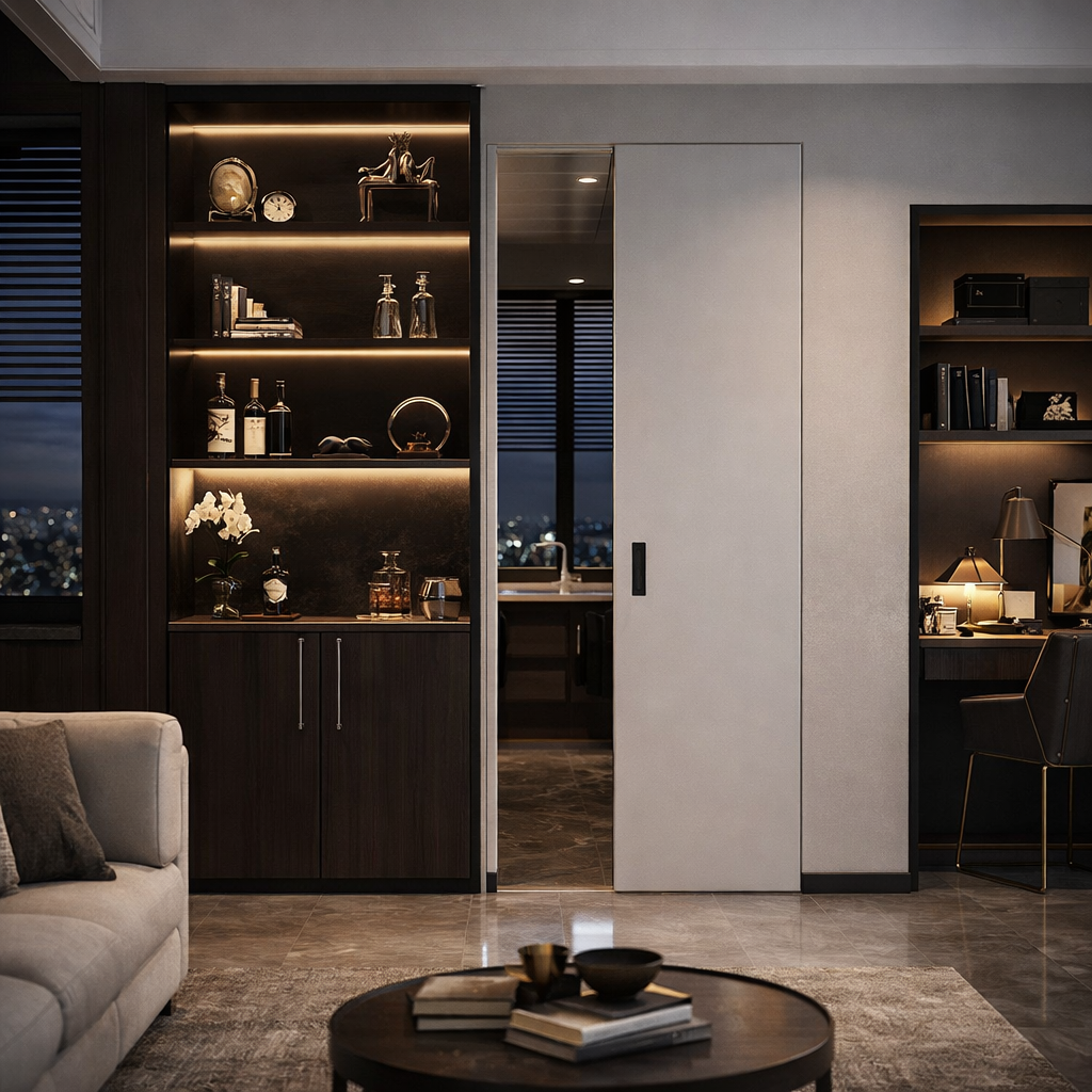 Пенал, предназначенный для установки одного полотна в оштукатуренный проём, сдвигающегося влево или вправо. Подходит для монтажа в стены толщиной до 150 мм. Может использоваться при новом строительстве или ремонте.